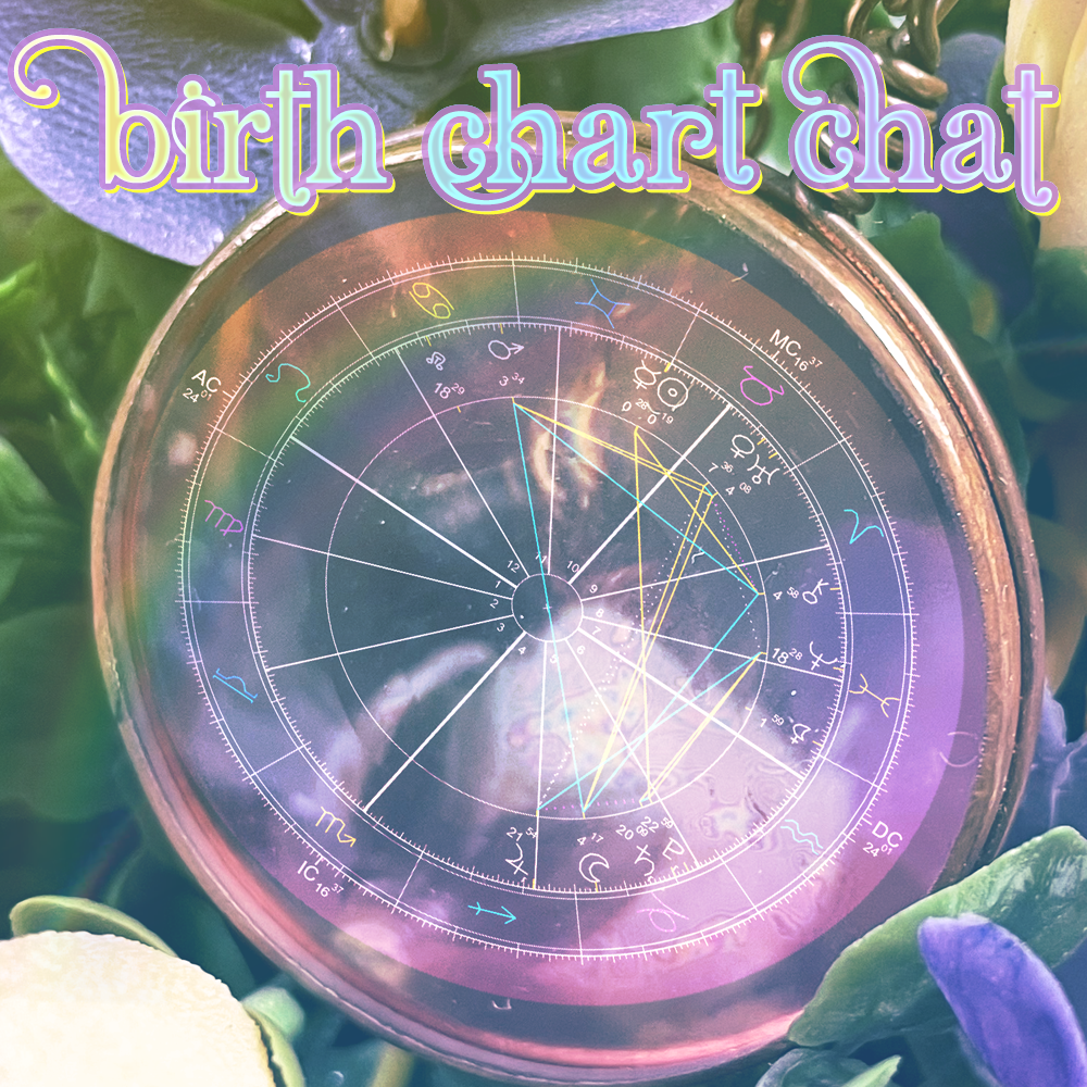 this reading (and astrology in general!) is also an excellent problem-solving tool, as i offer space to ask specific questions about your internal and external life, using your chart as a spotlight.